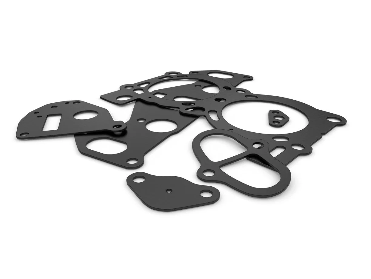 The offer includes cut gaskets made of materials containing: aramid fibers, glass fibers with rubber binder, graphite, graphite and aramid fibers with or without metal inserts, rubber, PTFE, mica, heat-resistant materials and other materials that are suitable to this type of processing.